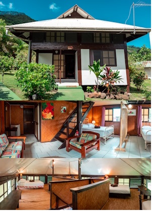 The Opuhi bungalow, for 4 guests, is set in the pension?s garden with trees and flowers. It is ideal for a family with two children, with the mezzanine providing added privacy. Decorated in a local and traditional style, it offers a calm and cool environment, just a few steps from the sea.