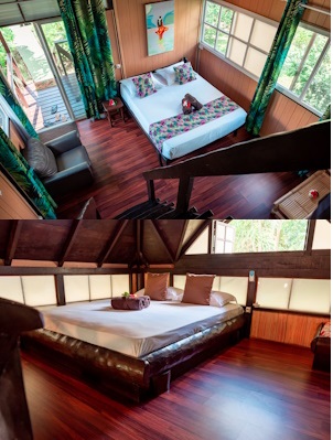 Set in a wooded garden, the Ape and Taina bungalows can accommodate up to four people. They offer a variety of sleeping arrangements, providing comfort and privacy, especially for families.