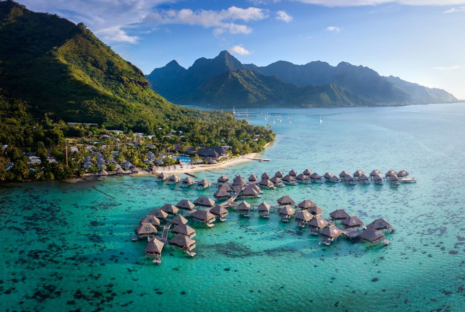 This resort is the only one on the island to offer a breathtaking view of Tahiti. It also boasts one of Moorea's most beautiful white sand beaches and is within easy reach of the ferry dock and airport. Elegant and romantic, with a young, Polynesian feel, it harmoniously blends modern decor with traditional architecture. There is a wide range of entertainment on offer, from cultural and sporting activities to gastronomic experiences and DJ nights. The resort has two restaurants, including ‘K’, where you can enjoy gourmet dishes with your feet in the sand. There is also a bar, diving centre and spa. You can choose a bungalow on stilts (the most popular), by the beach or in the heart of the lush gardens. The hotel is committed to sustainable development and is certified ‘Planet 21 Benchmarked Gold’.