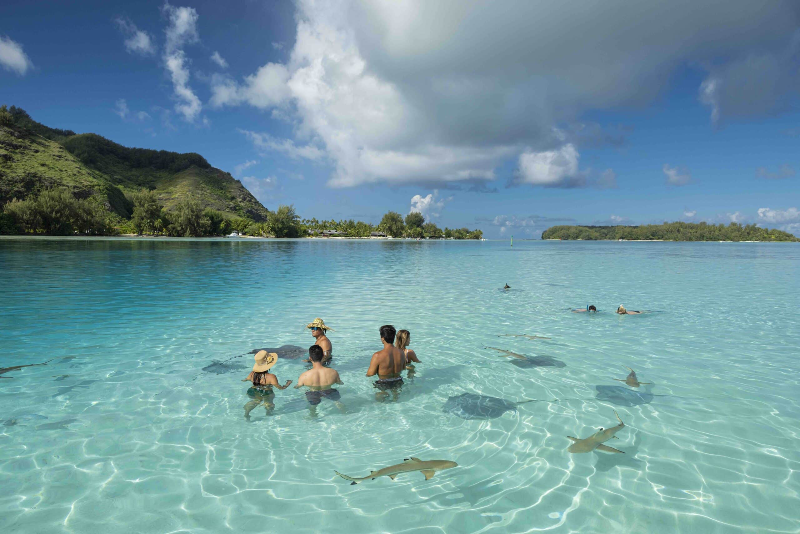 Dans les eaux de Moorea, les plongées avec raies et requins ravissent les amateurs de sensations marines. Une expérience unique permet de nager avec les dauphins, tandis que les baleines et leurs petits se laissent observer entre juillet et octobre.