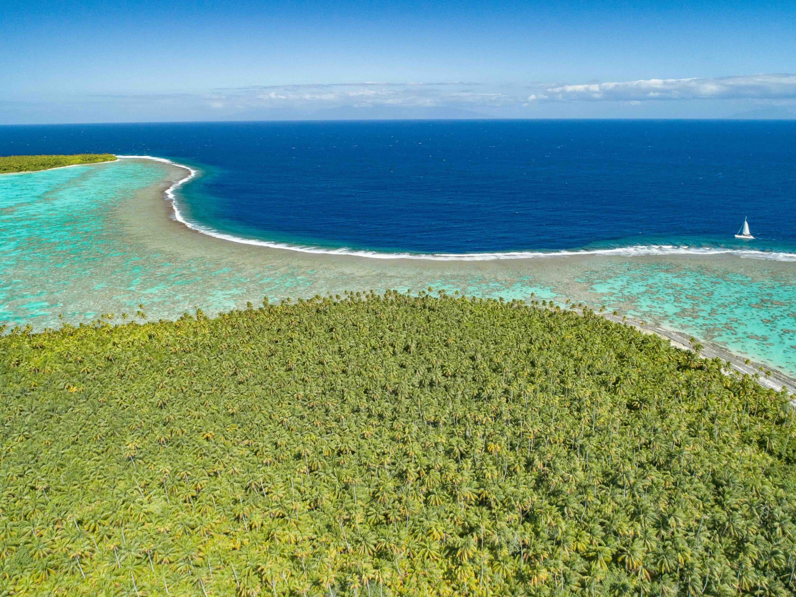 Tetiaroa, seul atoll des Îles du Vent situé au nord de Tahiti, est constitué de 12 motu entourant un lagon protégé.